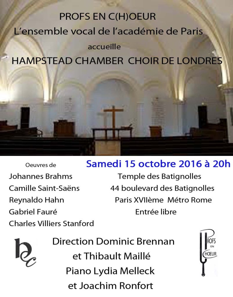 Hampstead chamber choir et Profs en chœur à Londres en 2015